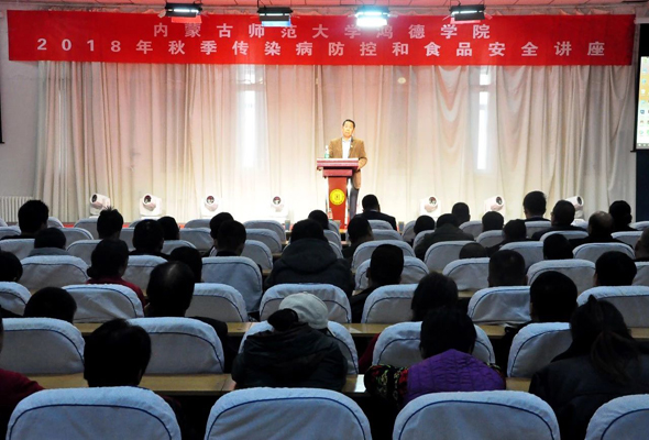 11月10日上午,鴻德學院2018年秋季傳染病防控和食品安全講座于圖書館五樓報告廳舉行。出席講座的領導和嘉賓有呼和浩特市結核病防治所主任程俊卿,新城區食藥所科長張治中,鴻德學院安全處處長梁和平,總務處處長焦建偉。鴻德學院各商戶從業人員和18級新生共計600余人參加講座。此次講座由總務處處長焦建偉主持。
