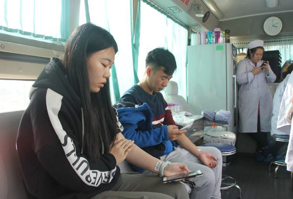同學們有序的依次進行信息登記、血液類型檢驗、靜脈采血等環節。等待獻血期間,同學們緊張而興奮,其中不乏參加過好幾次獻血活動的同學,但是他們仍舊為自己的行動能給需要的人提供幫助、挽救更多的生命而感到高興。