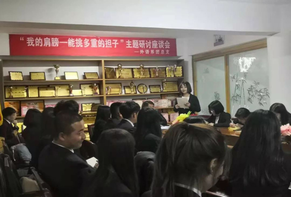 座談會(huì)的召開,提升了外語系團(tuán)支部的工作活力和凝聚力,同時(shí)也激發(fā)了學(xué)團(tuán)干部的愛國(guó)情懷和擔(dān)當(dāng)精神,教育引導(dǎo)了廣大學(xué)生爭(zhēng)做擔(dān)當(dāng)民族復(fù)興大任的時(shí)代新人。