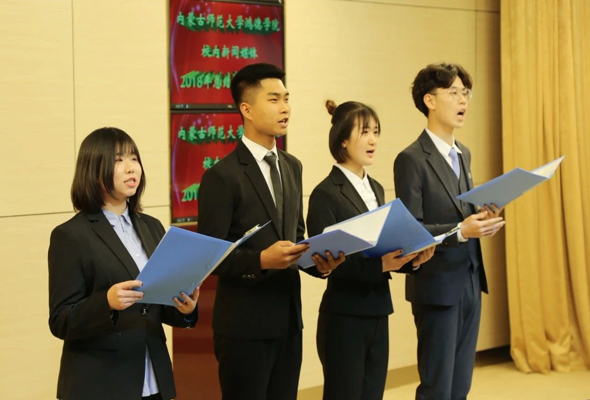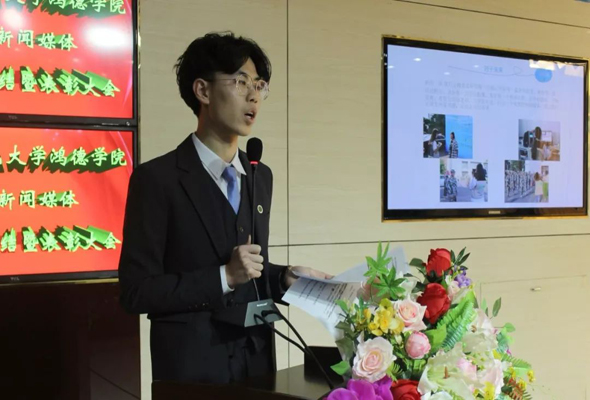 我院校媒的主要組成人員來自人文系。人文系主任李鳳清教授講到,自校園媒體建設以來,周玉樹教授大力支持,從一開始“不完善”到現在專業實訓基地的蛻變,這與校媒人員努力付出息息相關。他希望校媒人員可以始終秉著“道義、敬業、堅持真理”的精神,把握機會,為社會做出貢獻。隨后,影視藝術分院許艷軍主任講到,電視臺給學生一個發揮才能創新的平臺,他提出,將實踐技能與基礎理論相結合,培養一技之長,達到畢業即就業的水平,努力成為合格的建設者和接班人。