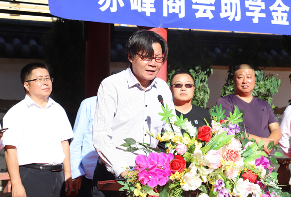 學院院長周玉樹首先代表學院向赤峰商會和出資人張學春表示感謝,然后給同學們講了愛心企業家張學春的創業經歷,他希望各位同學能夠努力學習,并以張學春先生為榜樣,勇擔社會責任。