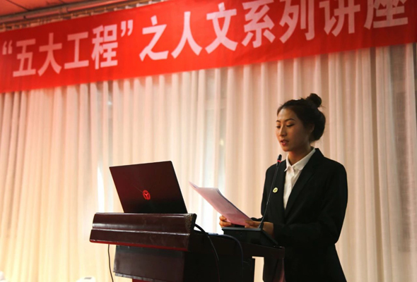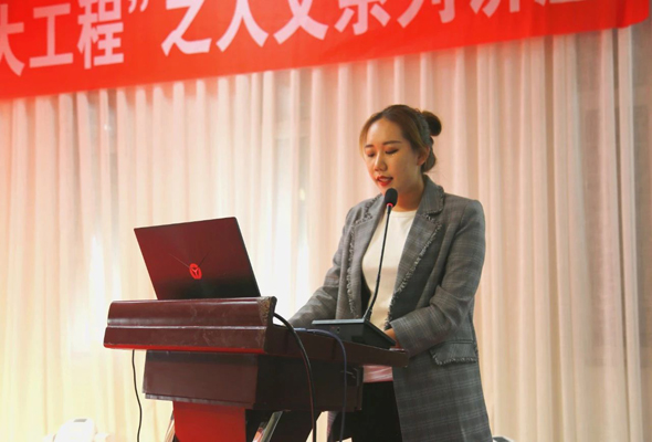 人文系學生代表郝園做報告