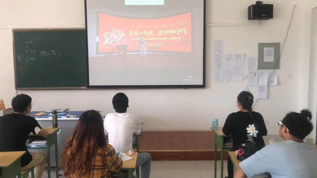 7月1日全院師生準時觀看慶祝建黨99周年主題團課的線上直播。