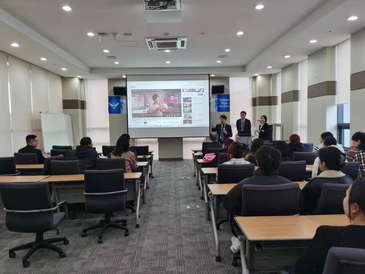 內蒙古鴻德文理學院代表團到達韓國青云大學后,受到了青云大學的熱烈歡迎。在歡迎儀式上,韓國青云大學中國學系教授崔昌源為同學們詳細介紹了青云大學的地理位置、校園環境、專業設置等內容,并耐心解答同學們的問題。青云大學對外交流處處長閔丙鉉還為到訪師生送上了特色禮品。隨后,師生一同前往青云大學教學樓、行政樓、圖書館、各類實操教室等地參觀。