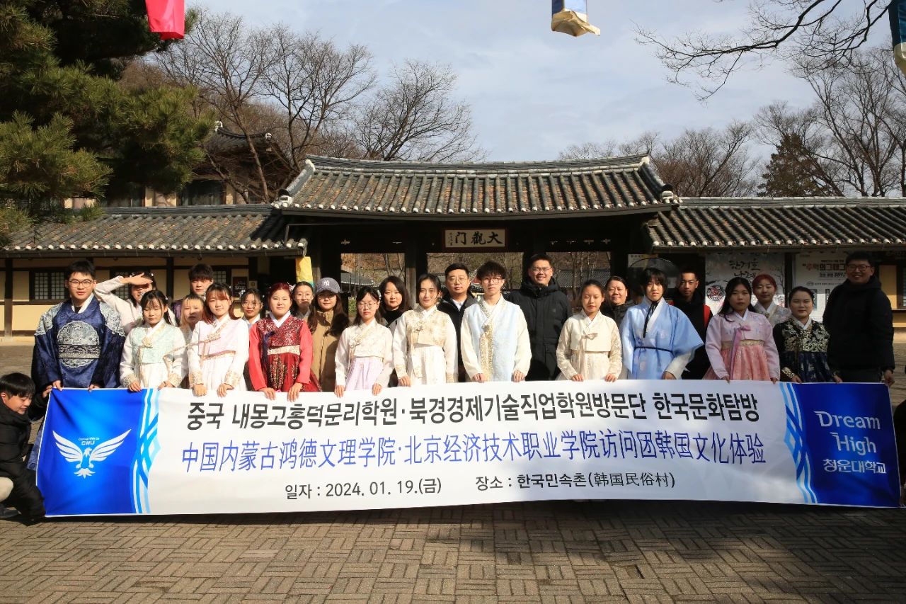 1月17日至21日,內蒙古鴻德文理學院教務處處長郝敏、副處長周川、外事辦教師鄧森及學院16名選修韓語課和韓語為第二外語的學生到韓國青云大學訪問交流。
