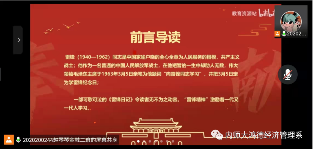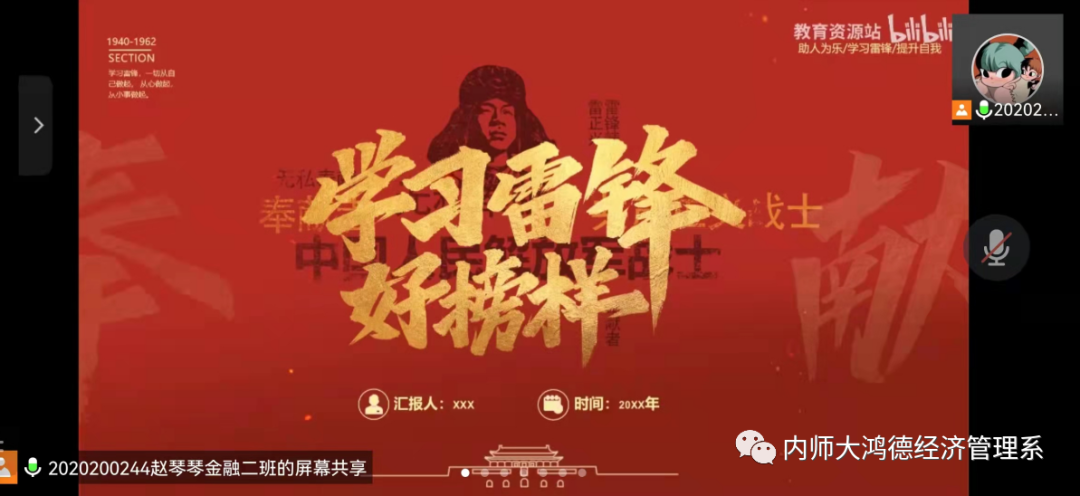 為團結引領廣大團員青年堅持以習近平新時代中國特色社會主義思想為指導,全面貫徹黨的十九大精神,進一步培育和弘揚新時代雷鋒精神。經濟管理系組織部于2022年3月22日組織2020級、2021級全體學生開展線上“學習雷鋒精神,傳承紅色基因”主題團日活動。