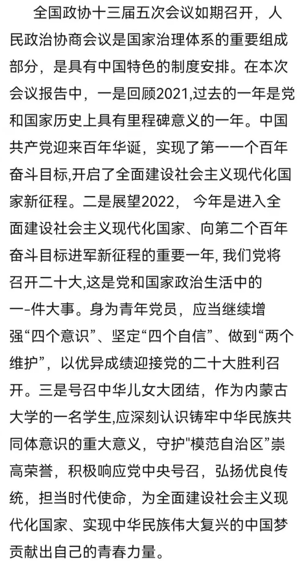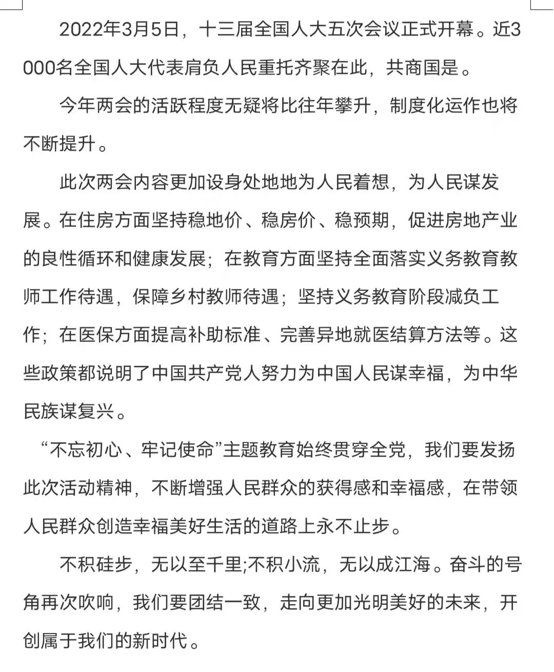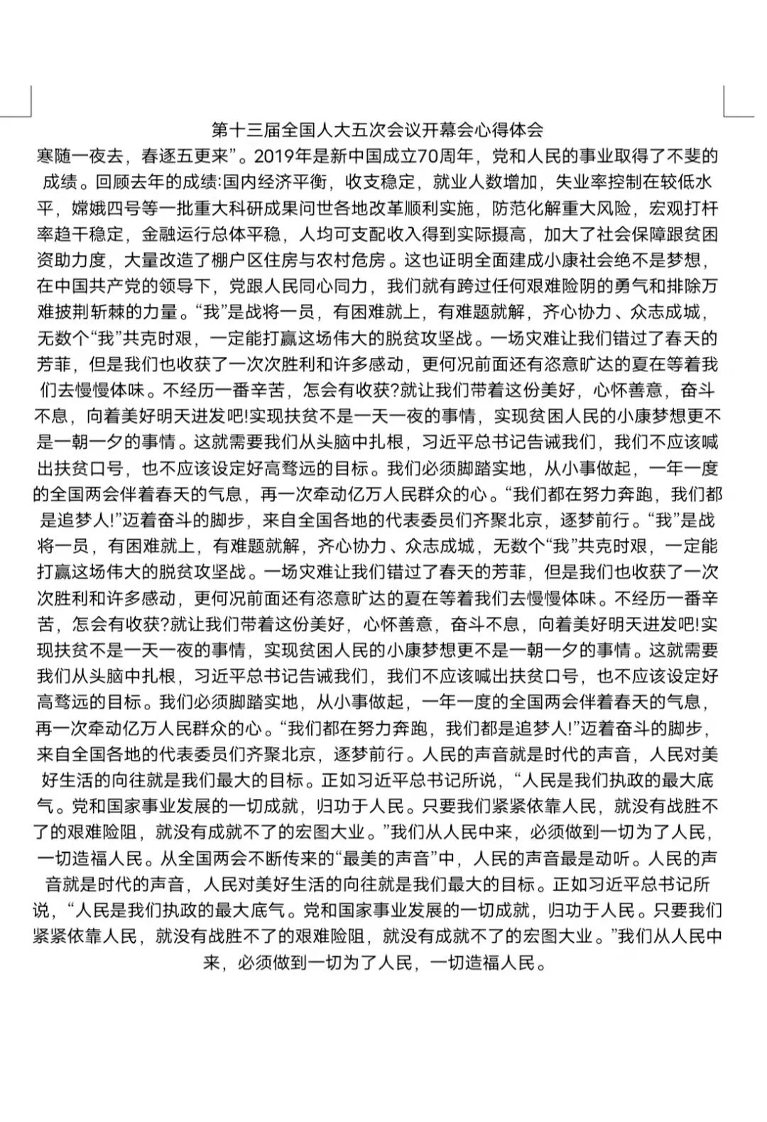通過兩會,我們心中升騰起澎湃的愛國熱情和強烈的社會責任感,提升了自己的能力,為祖國的現代化建設儲備資本。