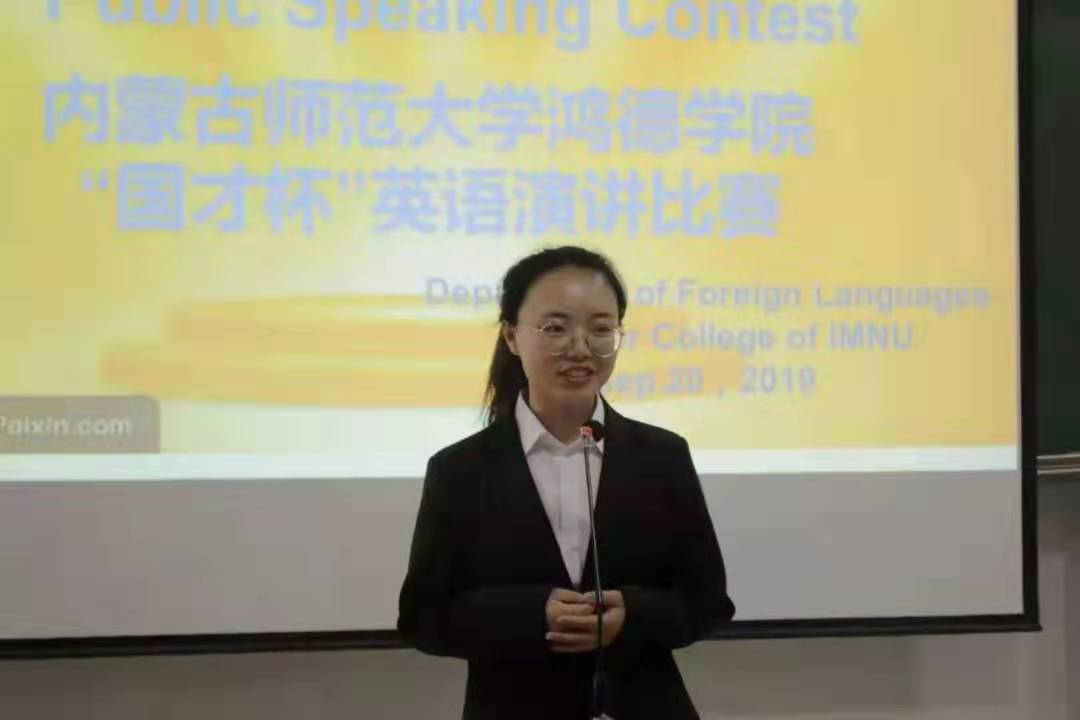 9月20日下午,內蒙古師范大學鴻德學院在圖書館公共教室舉辦“國才杯”英語演講比賽。