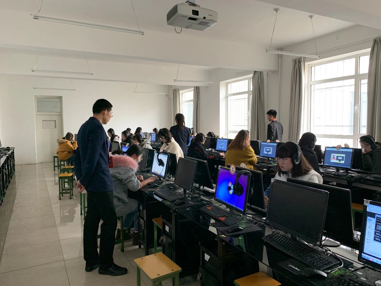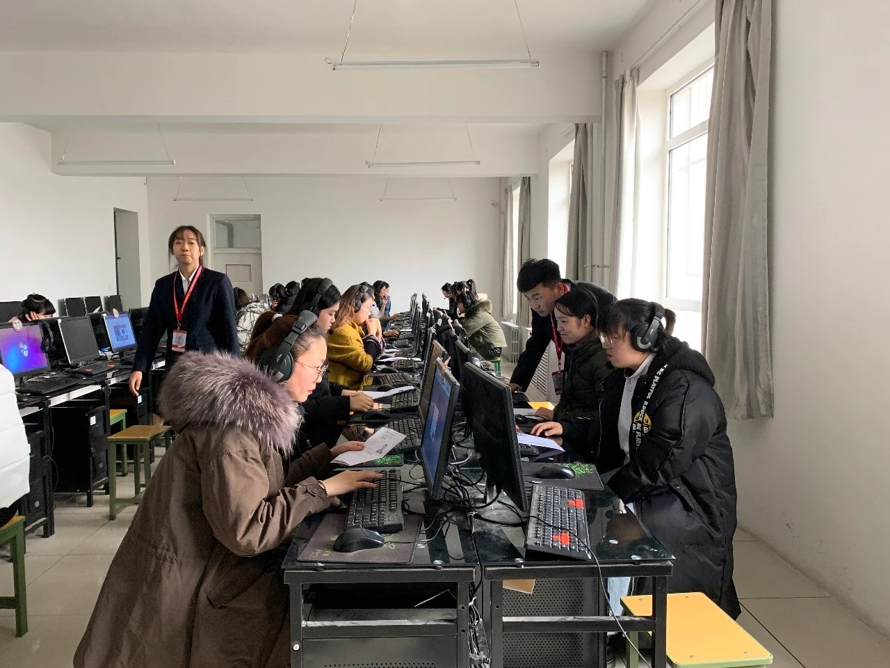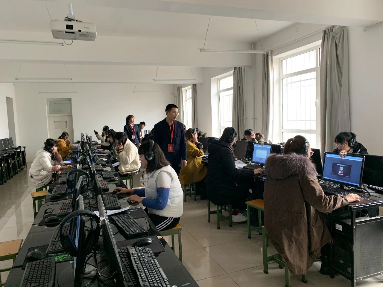 考試開始,考生有序進入考場,迅速找到各自的位置,按照老師講解的操作??荚囘^程中,監考老師及工作人員耐心地為考生解決他們在考試過程中遇到的各種問題。考生們發揮出自己最佳的口語水平,考場上在耳邊縈繞的是朗朗的英語發音,可以感受到考生們對于本次考試的認真態度和信心十足。