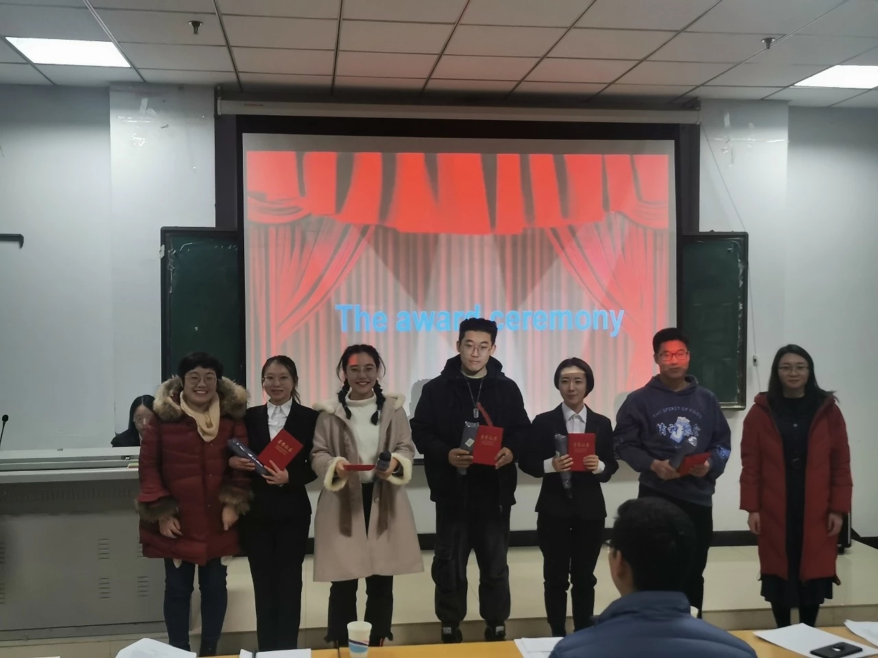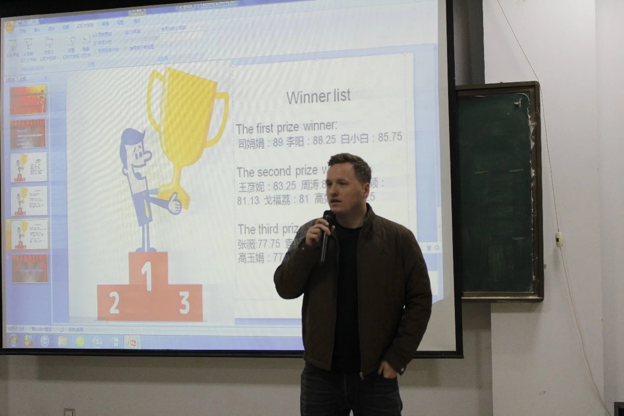 接著,獲獎選手代表發表了獲獎感言。四位評委老師及外教團隊負責人Moe為大賽獲獎選手頒發了獎品和獲獎證書。獲得一等獎的同學有:司娟娟、李陽、白小白(共計3人)