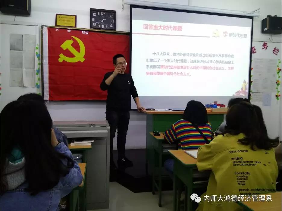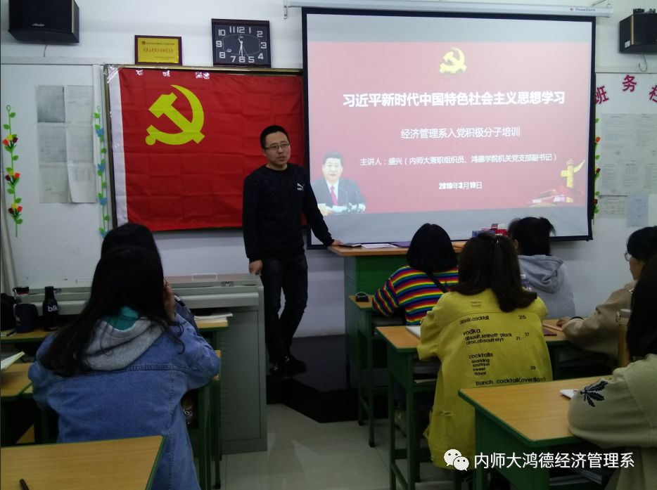為進一步加強對入黨積極分子集中培訓的規范管理,確保新一期入黨積極分子的質量。3月19日,我系在307教室開展了以“習近平新時代中國特色社會主義思想學習”為主題的黨課培訓,由內蒙古師范大學兼職組織員、鴻德學院機關黨支部副書記盛興老師主講。