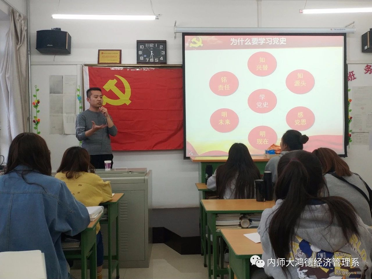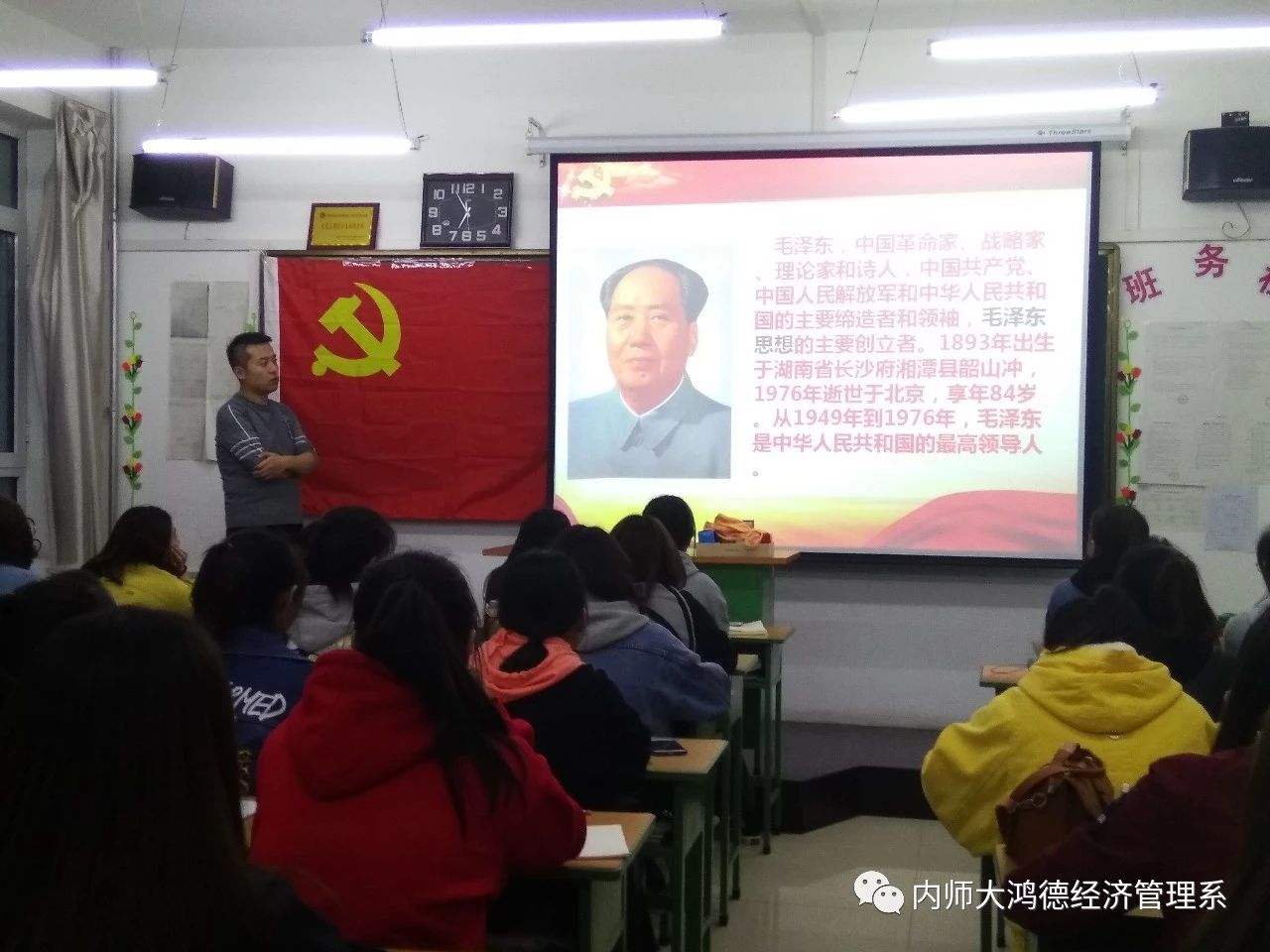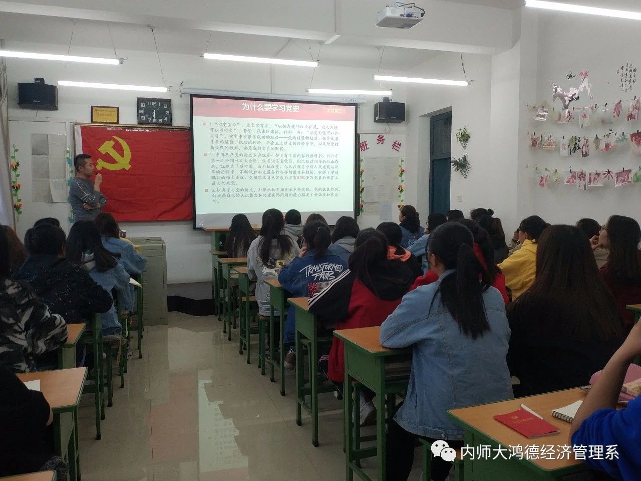 為了進(jìn)一步做好黨員發(fā)展工作、提高黨性修養(yǎng)、端正入黨動(dòng)機(jī)、堅(jiān)定入黨決心、培養(yǎng)合格黨員,2019年第十九期入黨積極分子培訓(xùn)班以“學(xué)黨史,知黨情,跟黨走”為主題的黨課培訓(xùn)在內(nèi)蒙古師范大學(xué)鴻德學(xué)院經(jīng)濟(jì)管理系天健樓307開展。此次入黨積極分子培訓(xùn)班的主講人是經(jīng)濟(jì)管理系黨支部宣傳委員劉昱靖老師。