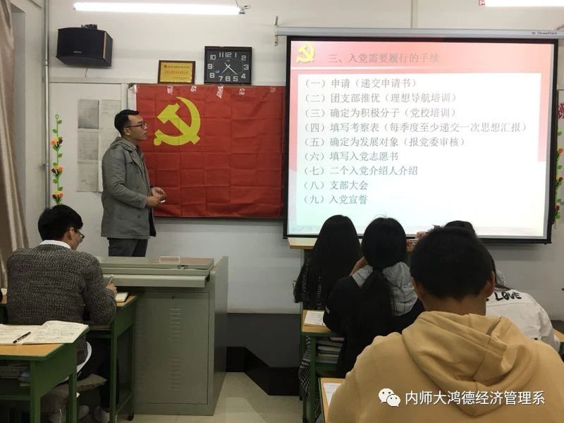 同學們一個個說自己的入黨動機,當同學們發言完后,呂老師讓同學為自己的勇氣和優秀鼓掌。
