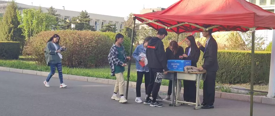 全校的同學們通過搶票系統積極參與,不過幾分鐘活動名額被搶一空。今天下午成功取得活動名額的同學們準時出現在活動起始地點—噴泉廣場。大家自發站隊,領取號碼牌,有些同學甚至進行了準備活動。
