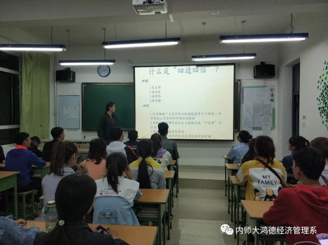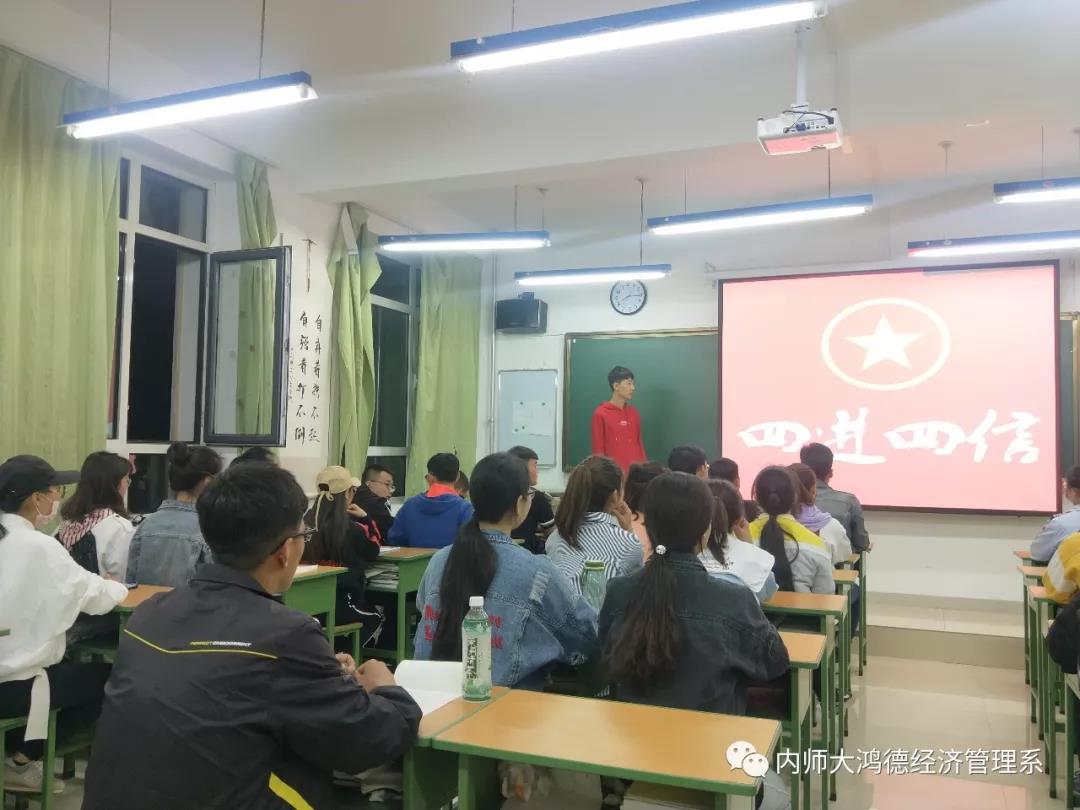 為深入學習習近平總書記系列講話精神,以推進共青團的組織創新和工作創新為目標,經濟管理系于2018年5月9日在天健樓開展了關于深入開展高校共青團學習宣傳貫徹習近平新時代中國特色社會主義思想“四進四信”的團日活動。