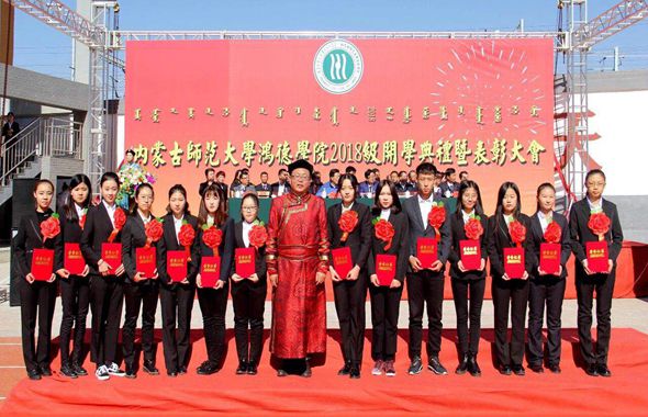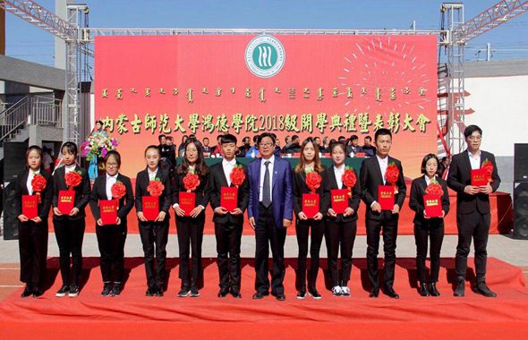工作動態/ LATEST NEWS2018年10月12日上午內蒙古師范大學鴻德學院2018級新生開學典禮暨表彰大會于運動場隆重舉行?;顒佑牲h委書記盧鳳龍主持,周玉樹院長首先發表了題為《立德掌教,重在鑄魂》的講話。周院長為來賓和2018級新生們詳盡的講述了鴻德學院校名、校徽、校訓的由來并代表學院歡迎每位新同學的到來,同時也祝賀表彰大會中獲獎的同學,誠摯感謝捐立獎項的社會愛心人士和企業家們。內蒙古教育廳原廳長、原國家督學郭明倫先生也發表了熱情洋溢的講話,2018級藝術系美術學專業秦佳悅同學作新生代表發表了入學演講。