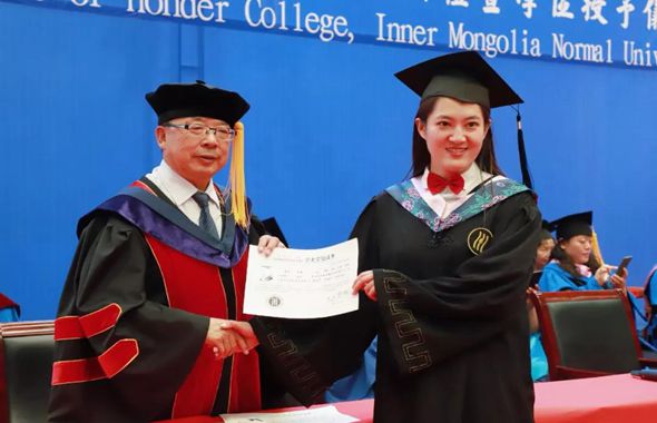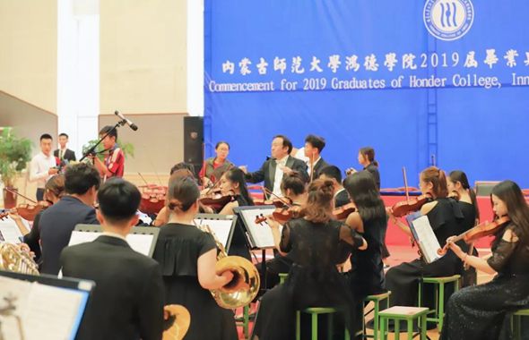 工作動態/ LATEST NEWS6月26日上午,內蒙古師范大學鴻德學院2019屆畢業典禮暨學位授予儀式在學院文體館隆重舉行。出席畢業典禮的領導和嘉賓有:院領導周玉樹、盧鳳龍、王新剛、劉文清、周偉,主禮教授張豐蘭、張呼鄰、宿莊、王曉燕、蔡文斌、Spaans、 Moritz、趙占彪、趙利生、王桂英、杜靜然、楊成力、王海亮、江鴻、偉勇、李中山、吳甲才,學院各系、各職能部門負責人。2313位畢業生、100余位教師代表和100余位家長代表參加了畢業典禮。2019屆全體畢業生懷揣著對祖國的熱愛和建設美好祖國的憧憬,飽含深情地演唱《我和我的祖國》。聲聲高昂的歌曲為15級畢業生四年的大學生活畫上了圓滿的句號,2019屆畢業典禮暨學位授予儀式在嘹亮的歌聲中落下帷幕。