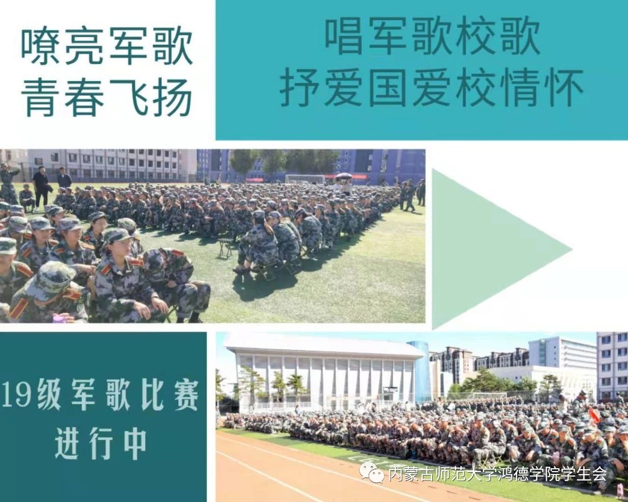 內蒙古師范大學鴻德學院于2019年9月17日下午三點,舉辦2019級新生軍歌比賽。擔任2019級新生軍歌比賽的評委老師有:辦公室包英超老師,學生管理科科長白曉童老師,生活管理科于力老師和人文系教工黨支部書記邵毅老師。